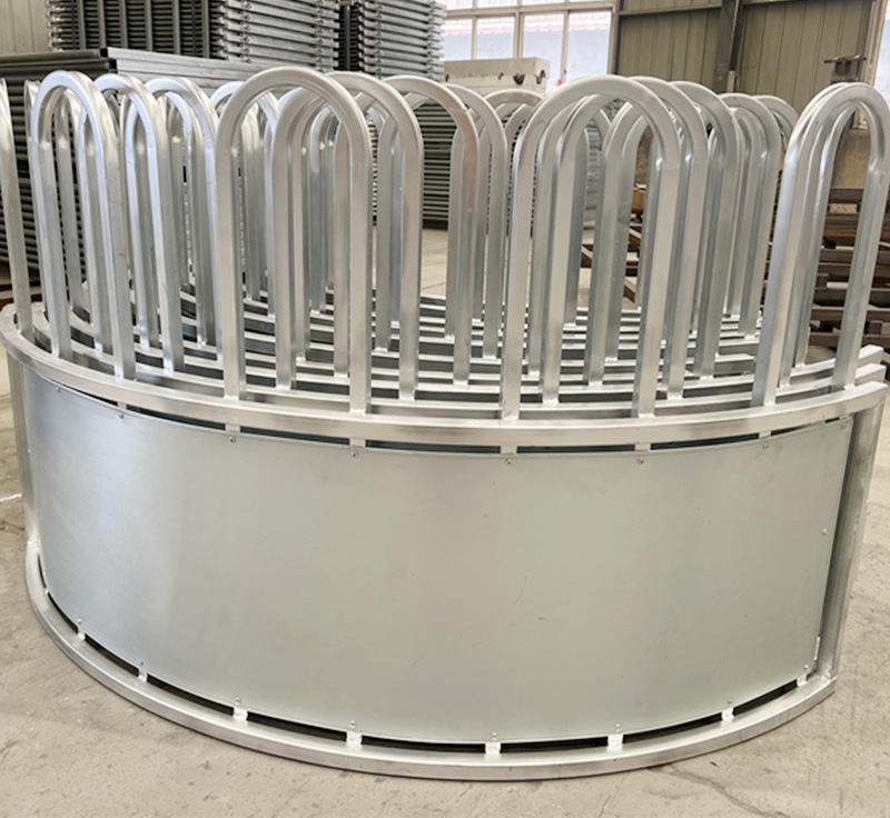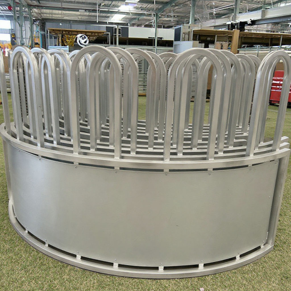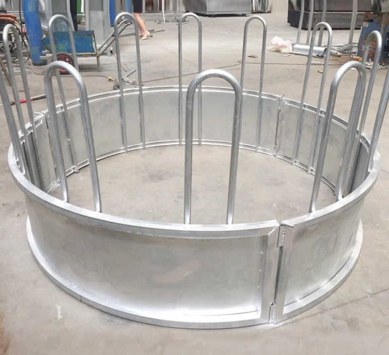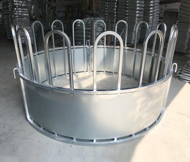 The construction forces the animal to eat with its head inside the ring, avoiding split hay.